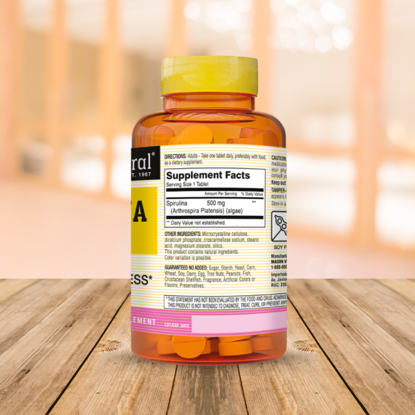 Uso recomendado para promover la salud y el bienestar general. Fuente natural de clorofila, hierro, beta caroteno y vitamina B.
